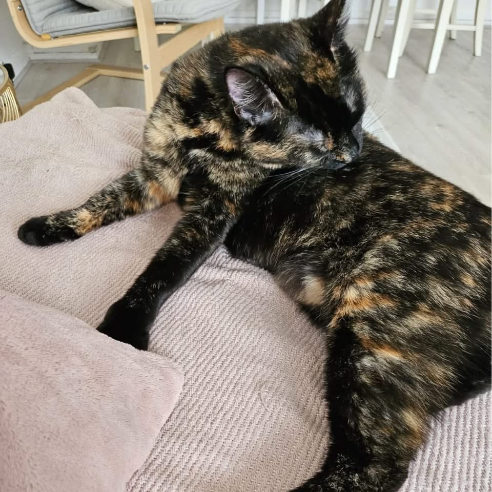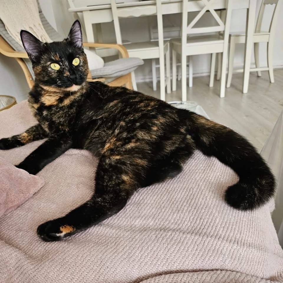 Rubis (née le 1/06/2024) est une jolie écaille gentille qui aime la compagnie de ses humains et être proche d’eux.
