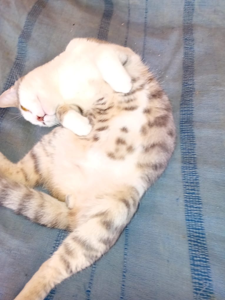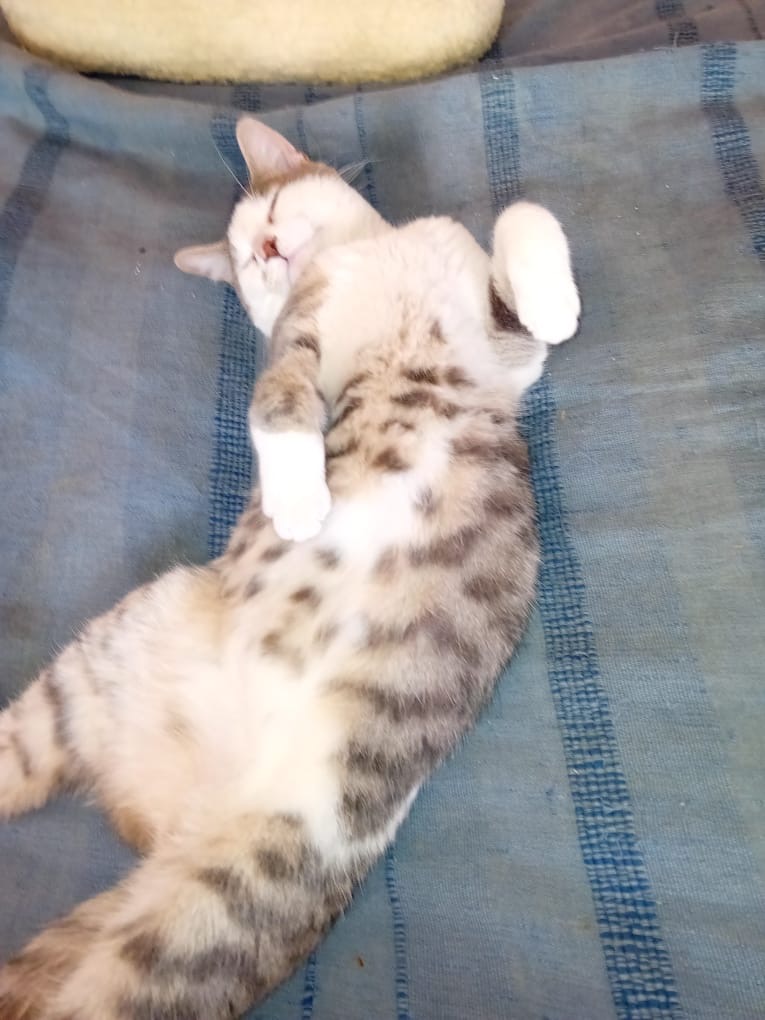 Ce que nous pouvons en dire au bout de quelques jours, est que c’est un très gentil matou, tout doux, qui adore les câlins.
